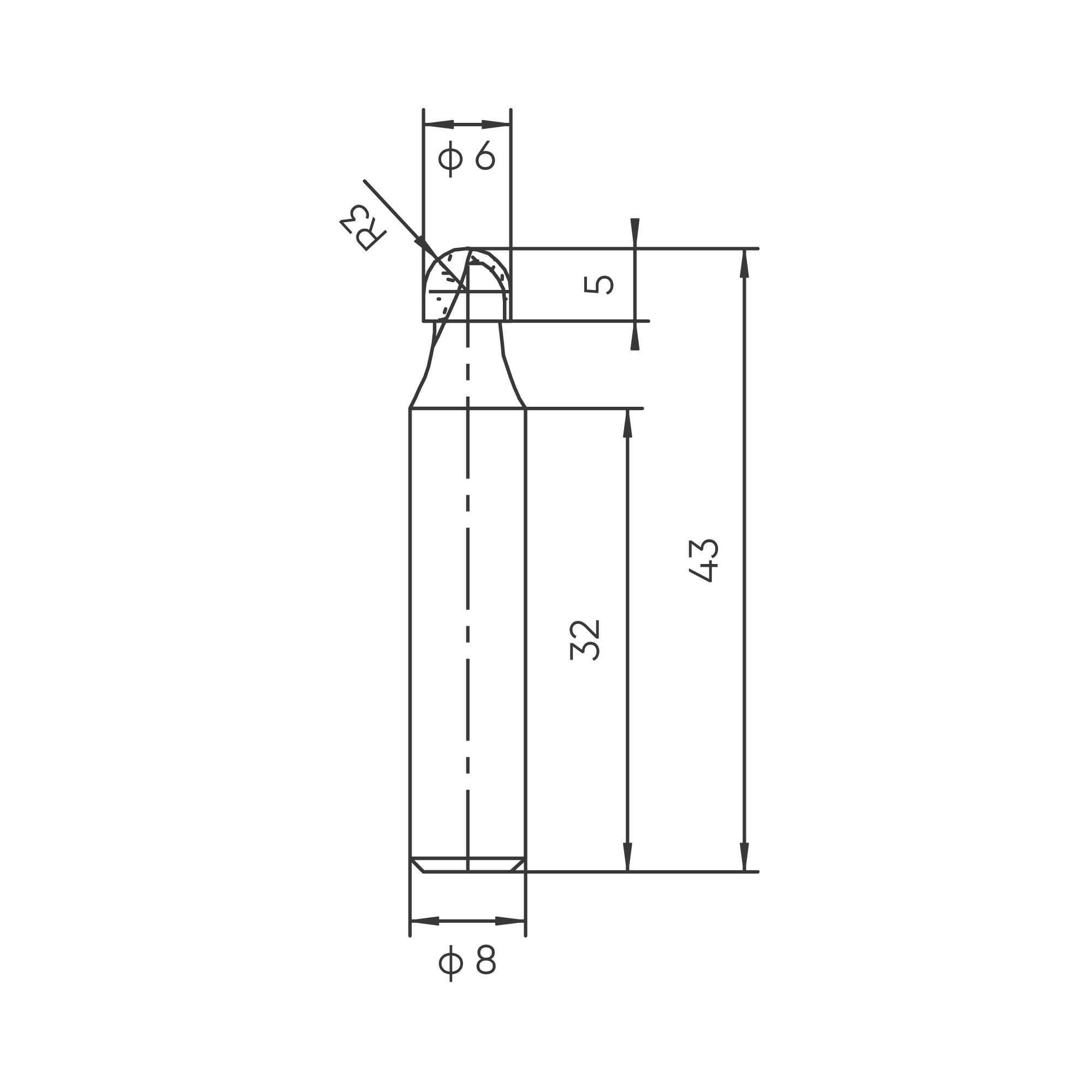 202.3802 Фреза пазовая полукруг (чаша) Z=2 R=3 D=6*6*42 S=8