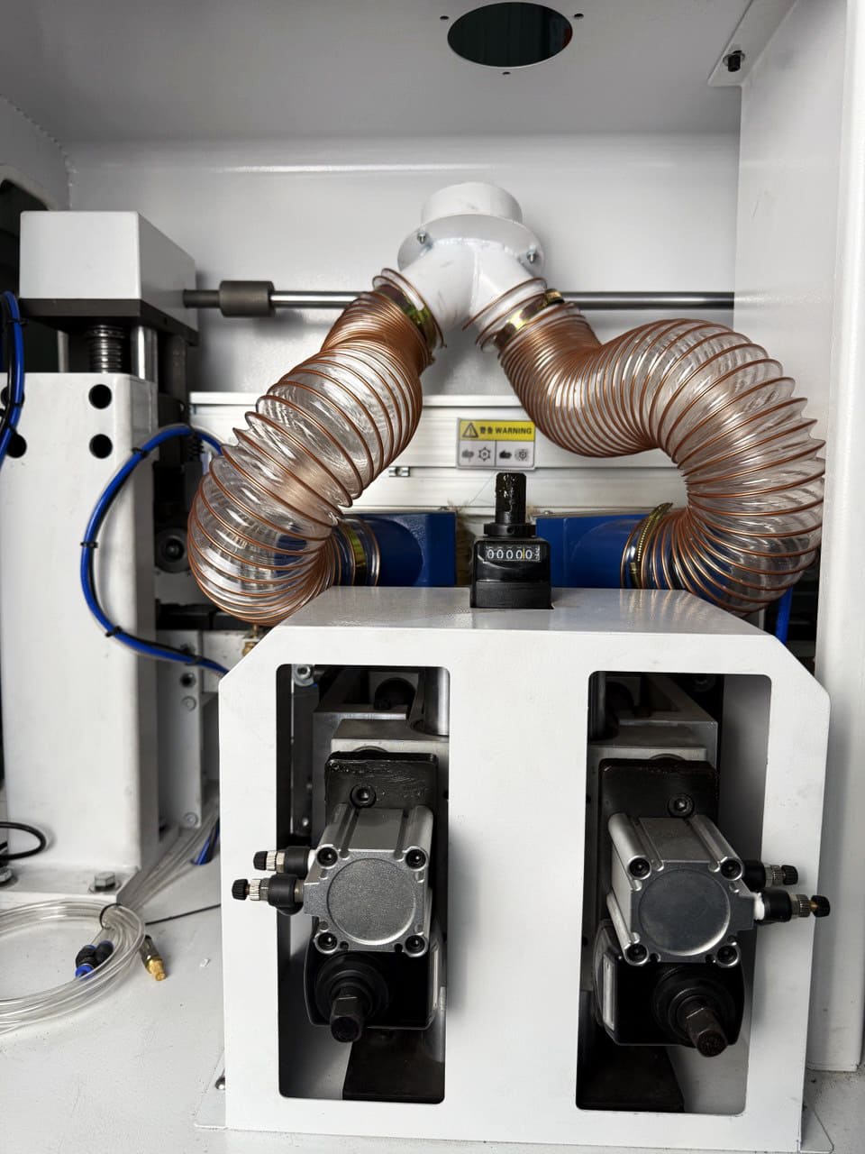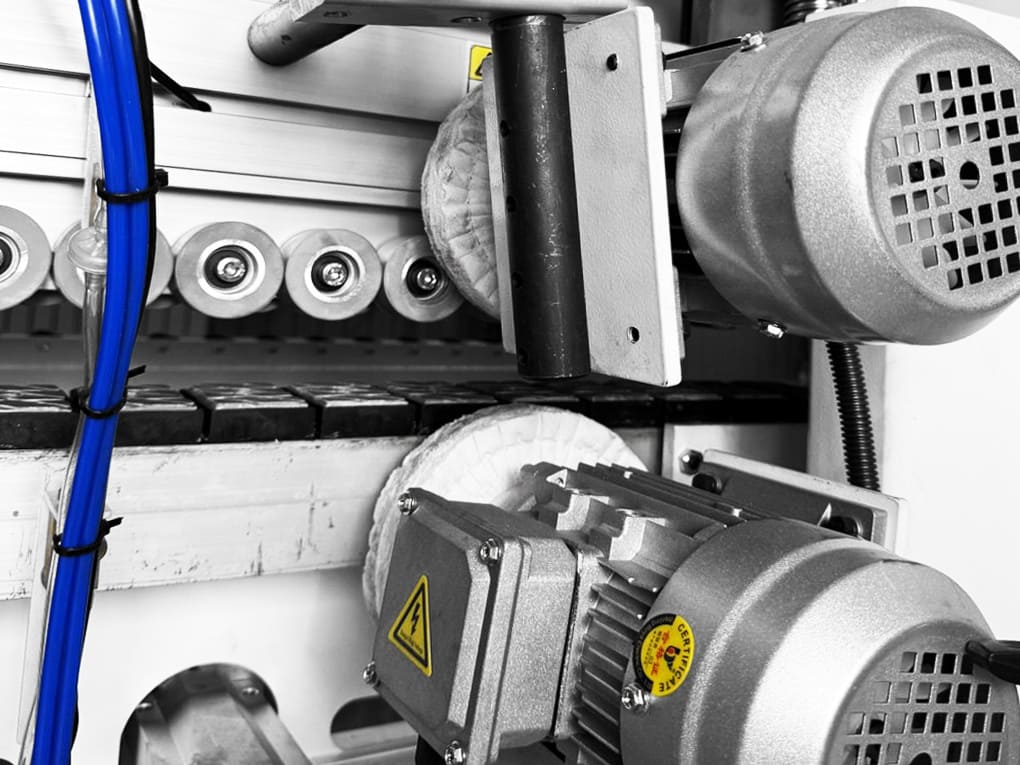 Для предварительной прифуговки заготовки перед приклеиванием кромки. Удаляет сколы и паз от подрезной пилы Узел оснащен 2 высокооборотистыми моторами по 1,8 кВт каждый.