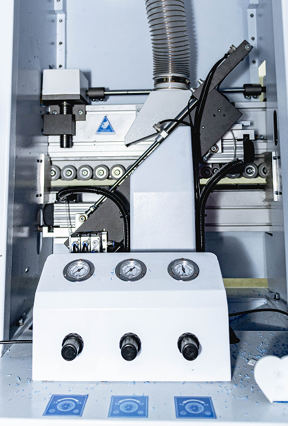 Предназначен для удаления остатков клея с плоскости детали, обеспечивая безупречную обработку в зоне клеевого шва. Высокоточные копиры, находящиеся на минимальном расстоянии от края заготовки, позволяют агрегату повторять возможные неровности плитного материала.