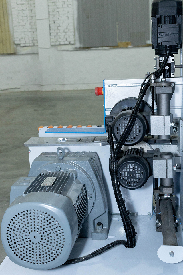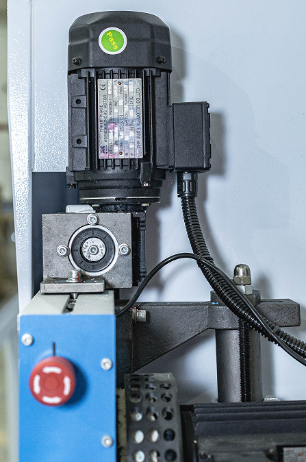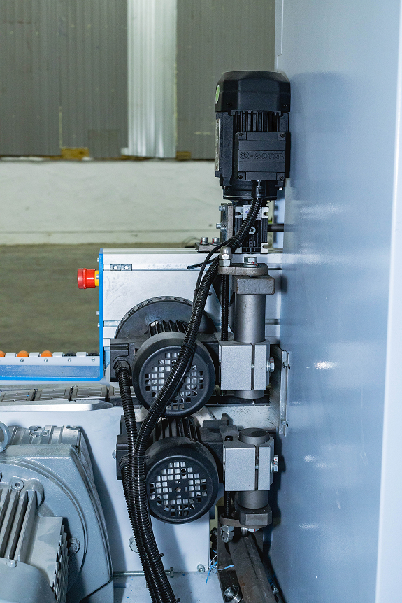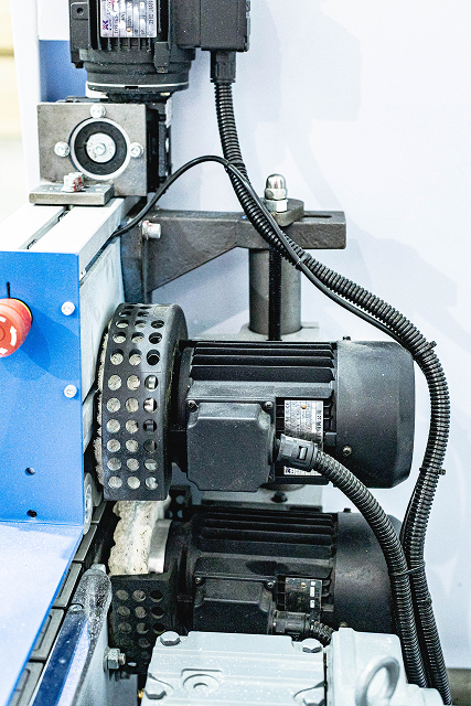 Надежный редуктор приводится во вращение эл. двигателем 2,2кВт и позволяет развивать скорость до 23 м/мин. Система направляющих позволяет точно и без вибраций перемещать детали относительно узлов обработки.