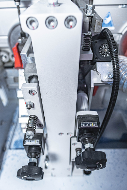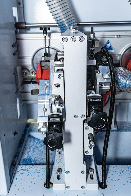 Циклевочный агрегат для кромок толщиной 2мм с оснащен точными копирами и ножами R2. Имеет систему быстрой деактивации при работе с тонкими кромками.
