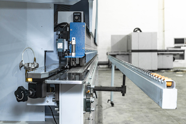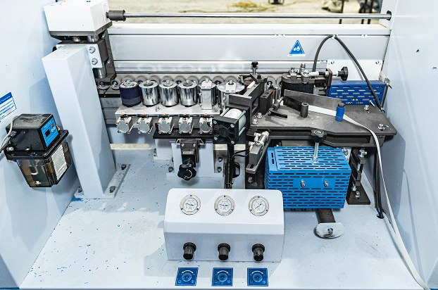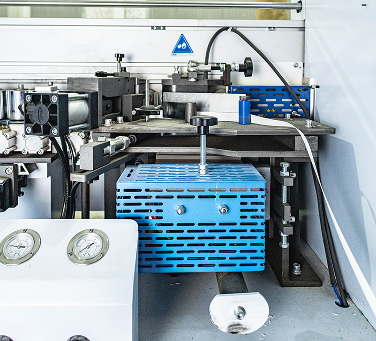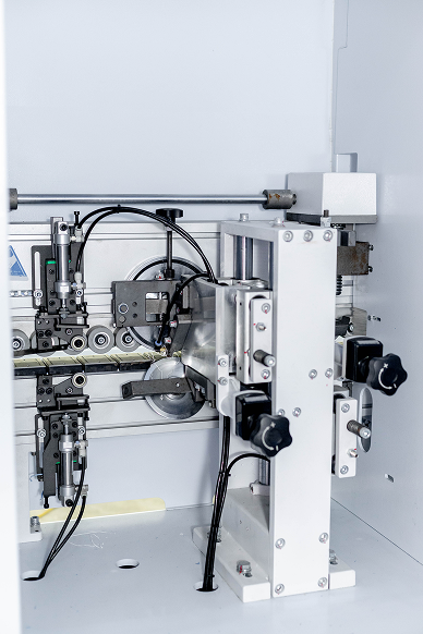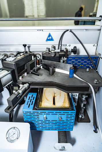 Клеевая ванна с нижним расположением, не требует перенастройки на толщину материала, обеспечивает безупречное нанесение клея-расплава на торец обрабатываемой детали.