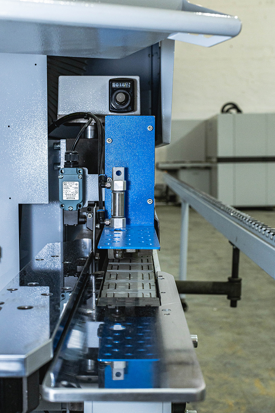 Оснащен высоко оборотистыми двигателями 12000 об/мин; совершая движение по линейным направляющим, обеспечивает точное торцевание в размер пильными дисками D-100мм. Аспирационный кожух обеспечивает отвод стружки из зоны торцевания