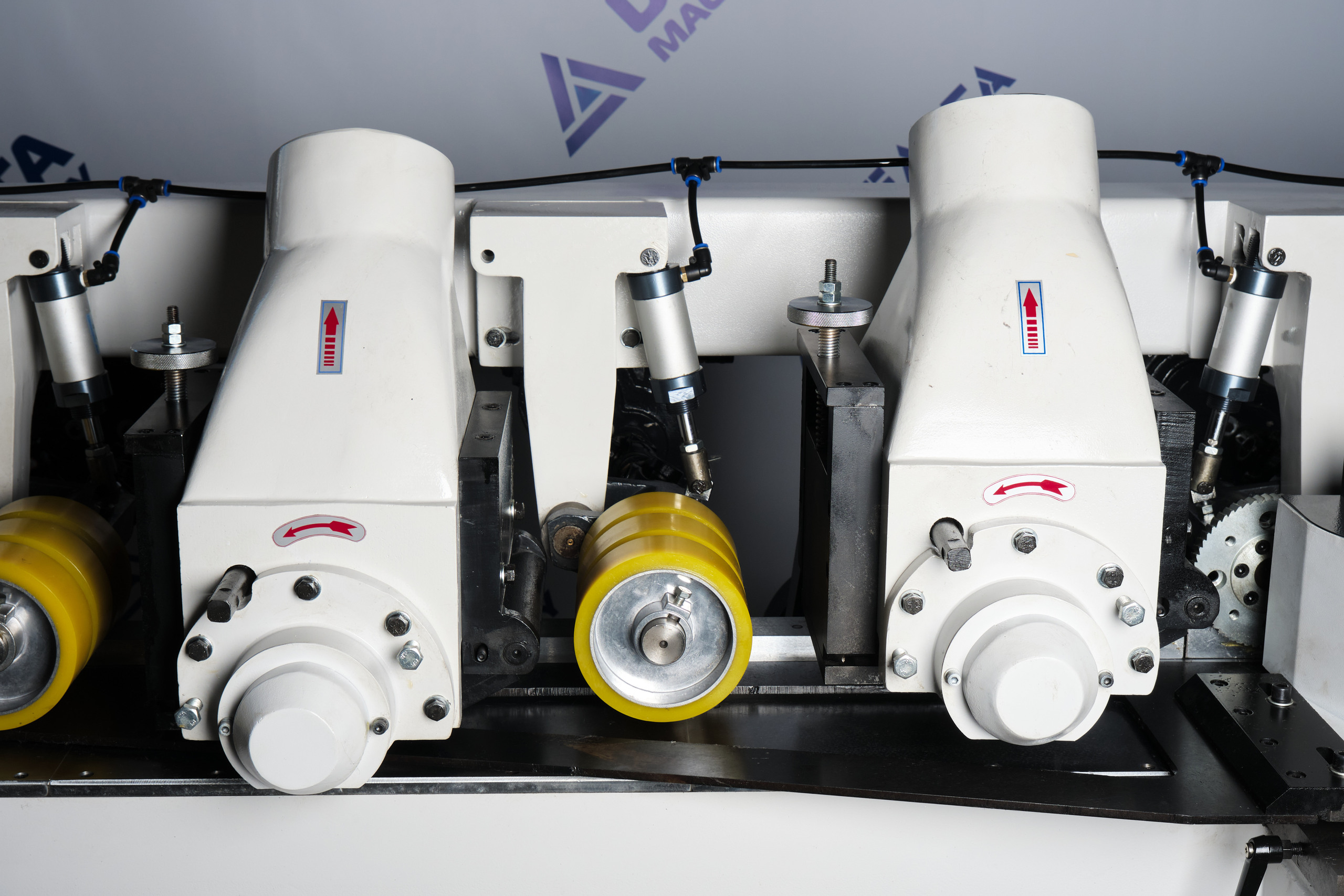 • Пневматическое подающий ролик имеет возможность регулировать усилие, что способствует плавной подаче заготовок, различной толщины