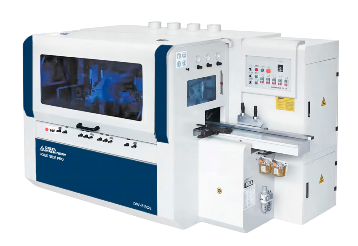 Четырёхсторонний 5-ти шпиндельный станок DELTAMACHINERY FOUR SIDE PRO DW-518DS предназначен для высокоточной четырехсторонней обработки деревянной заготовки с целью получения высококачественных изделий за один проход. После обработки на 4-х сторонних станках отпадает необходимость в последующем шлифовании профилированных и строганных поверхностей.