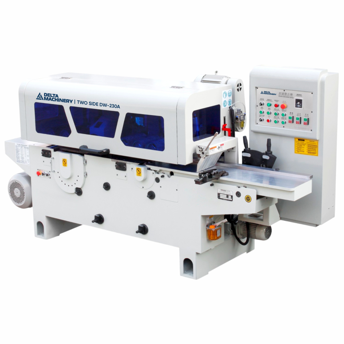 Надежная панель управления учитывает класс данного оборудования и соответствует требованиям мощных агрегатов станка. Функционал панели: Аварийный стоп, включение/выключение и регулировка скорости подачи, включение/выключение шпинделей индикаторы и плавная регулировка скорости подачи.