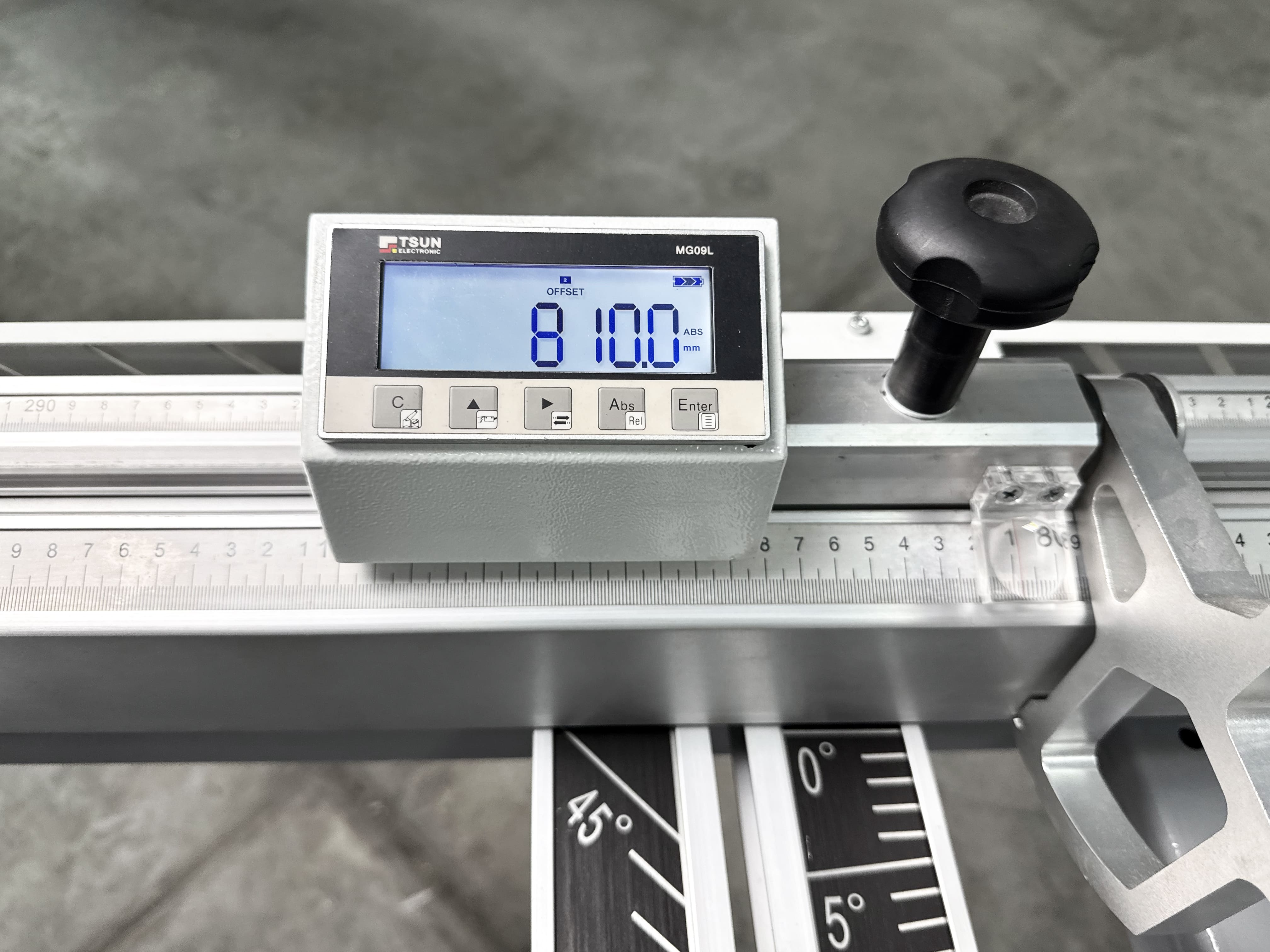 На линейке установлено два перекидных упора, один из них оснащен блоком цифровой индикации, что позволяют быстро и точно настроить станок на необходимый размер. Это исключает человеческий фактор и сводит кол-во брака к нулю.