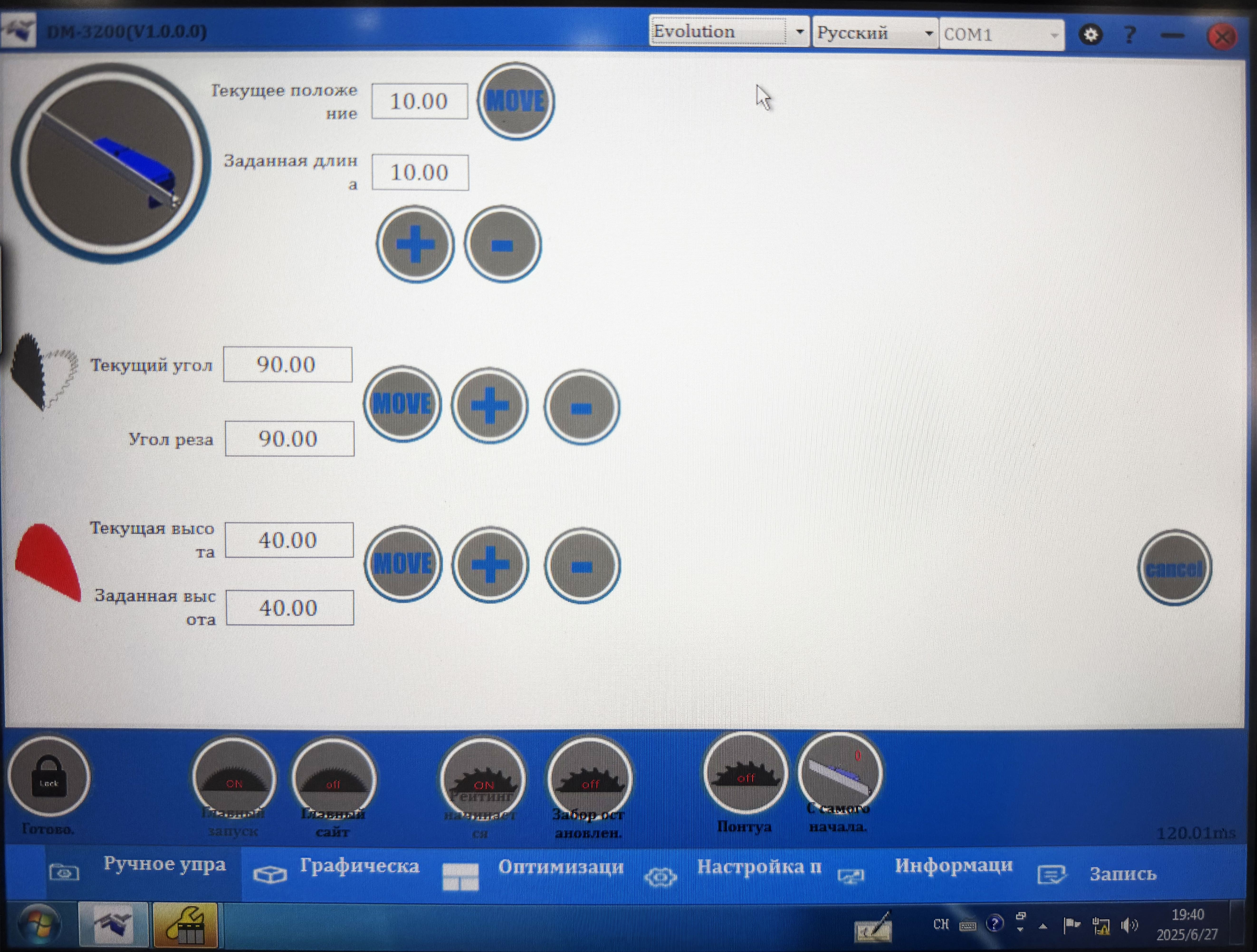 Простой и понятный интерфейс на русском языке с дублированием информации графическими скинами, позволяет быстро настроить станок на необходимые параметры.