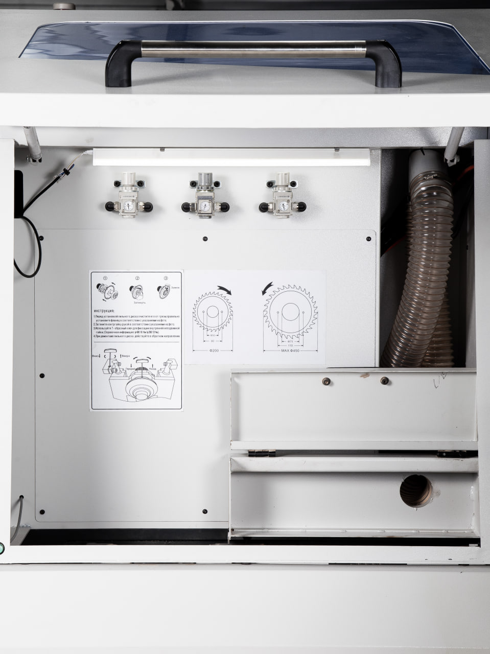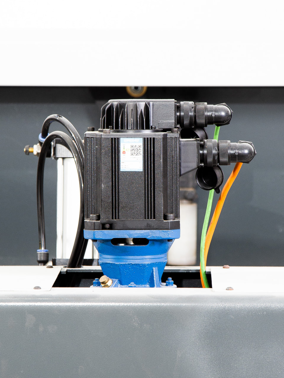 Основная и подрезная пила имеют разные привода и могут опускаться и подниматься независимо друг от друга. Мощность основного привода 18 кВт, в совокупности с подрезным 2 кВт, обеспечивает высокую скорость и стабильность процесса раскроя материала