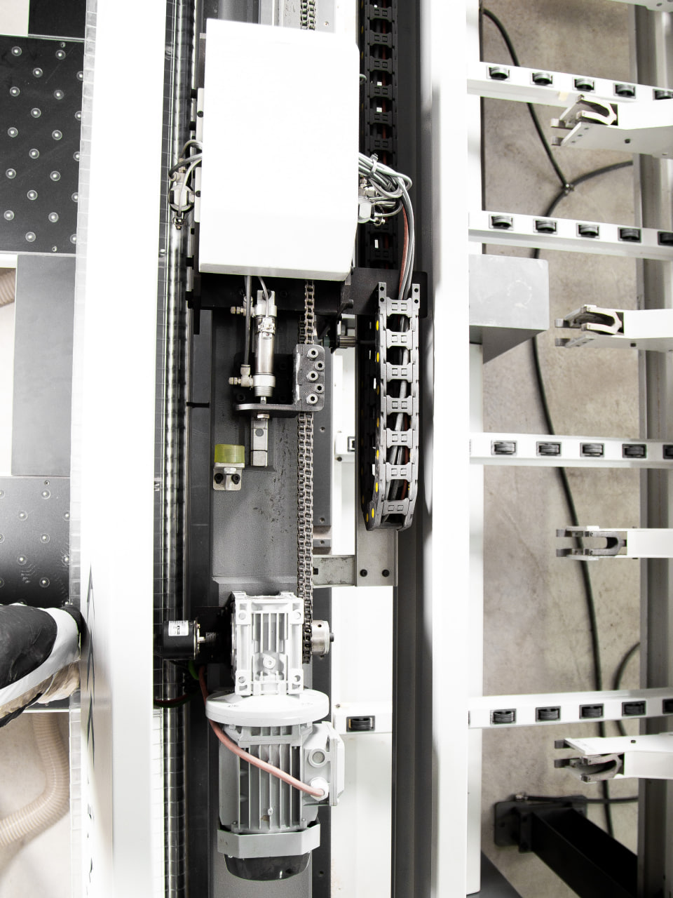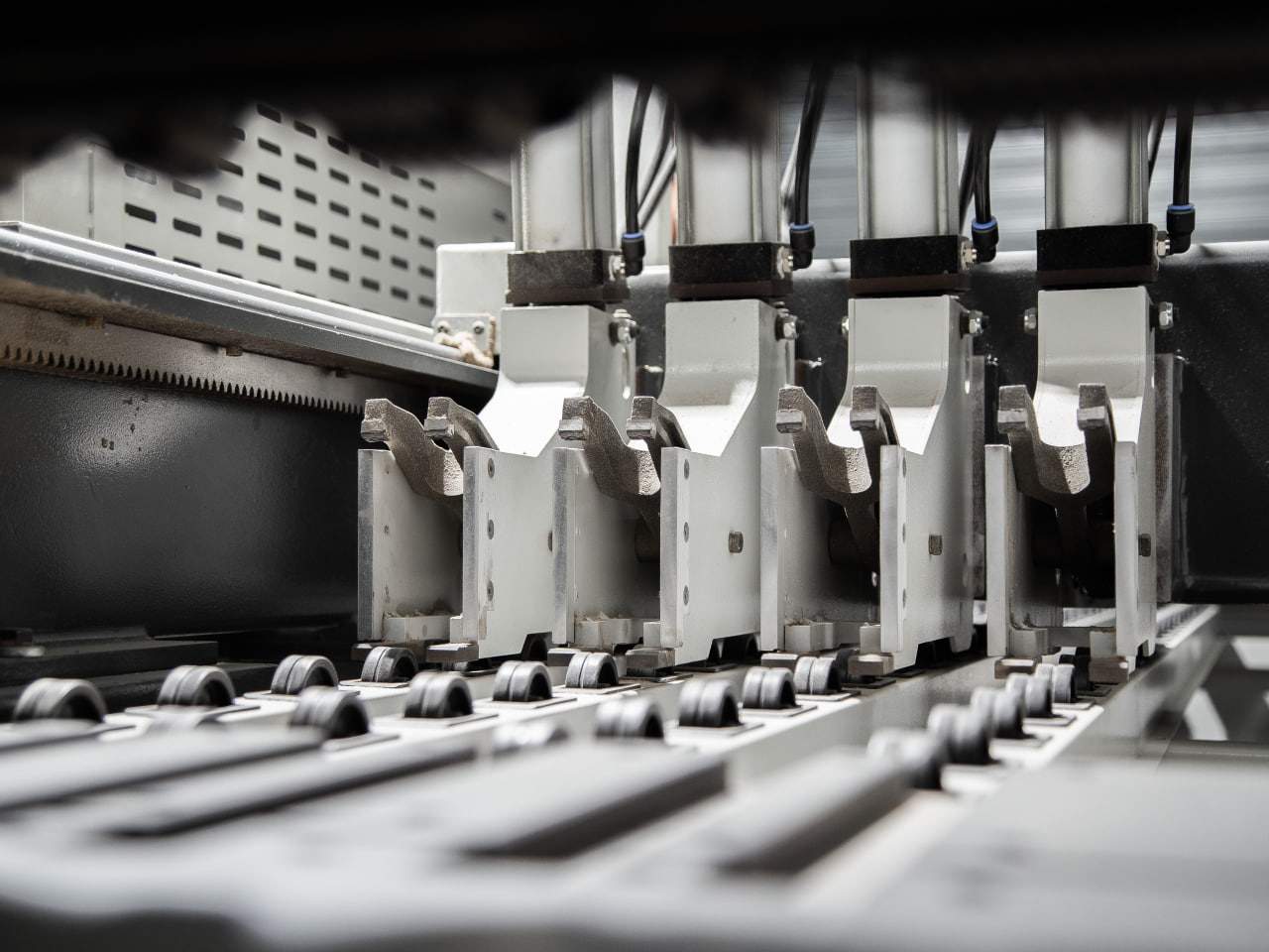 Сервопривода увеличенной мощности позволяют быстро и с высокой точностью производить позиционирование и раскрой пакета плитного материала.