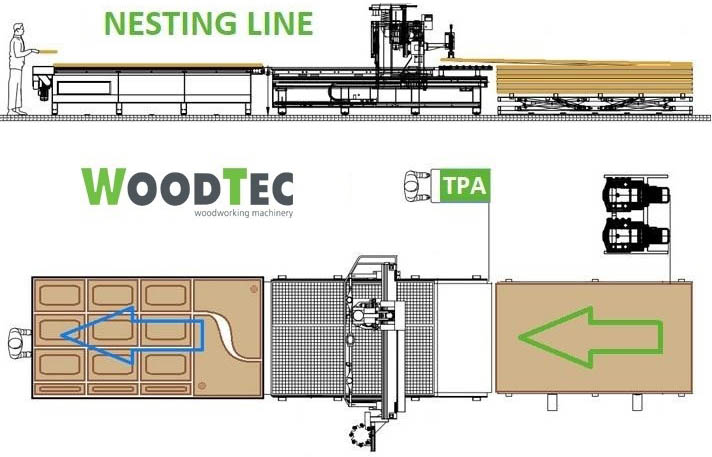 Основное преимущество центра – возможность автоматизации подачи, позиционирования и сбора заготовок, полная интеграция в программы мебельных конструкторов.