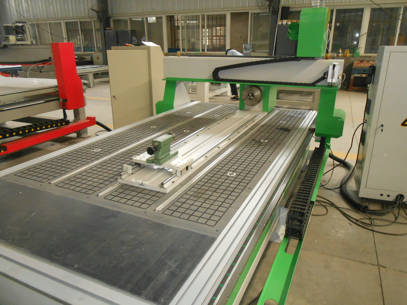 Ось вращения для обработки балясин. Максимальный диаметр заготовки - 300 мм. Длина заготовки максимальная - 1500 мм. Поставляется с трехкулачковым патроном и задней бабкой, перемещающейся по направляющим. Поддерживается полноценная четырехосевая обработка.