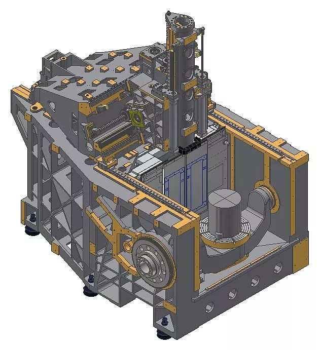 Конструкция станины проектируется методом конечных элементов с применением технологии динамической оптимизации — она обладает высокой жесткостью и способностью подавлять вибрации. Выполнена из чугуна марки «Механит». Проходит вторичную закалку и процедуру естественного старения в течении 6 месяцев для снятия внутренних напряжений и стабильности.
