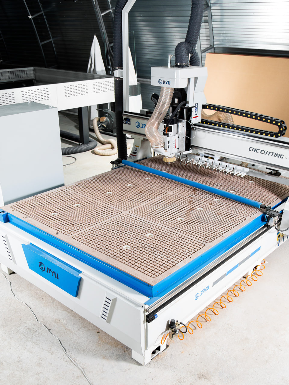 Для удобства загрузки обрабатываемых листов материала на стол предусмотрены специальные ролики. Кроме того, станок в базовом исполнении оснащен системой разгрузки, которая сталкивает обработанные детали и очищает стол от стружки. Всё это в целом ускоряет процесс производства.