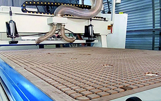 Сверлильная группа на 9 независимых инструментов по оси X и Y позволяет производить плоскостную присадку с высокой точностью и скоростью.