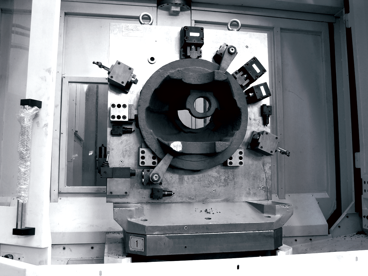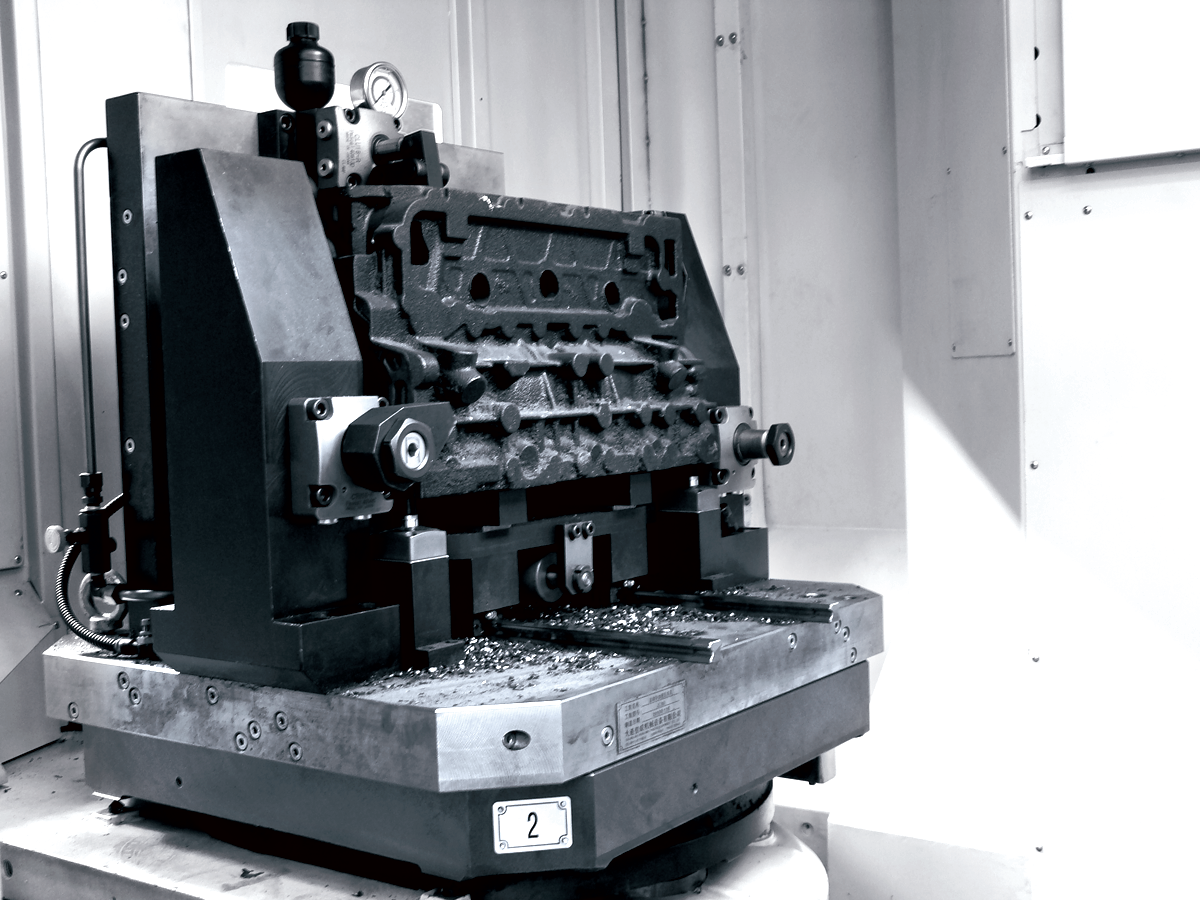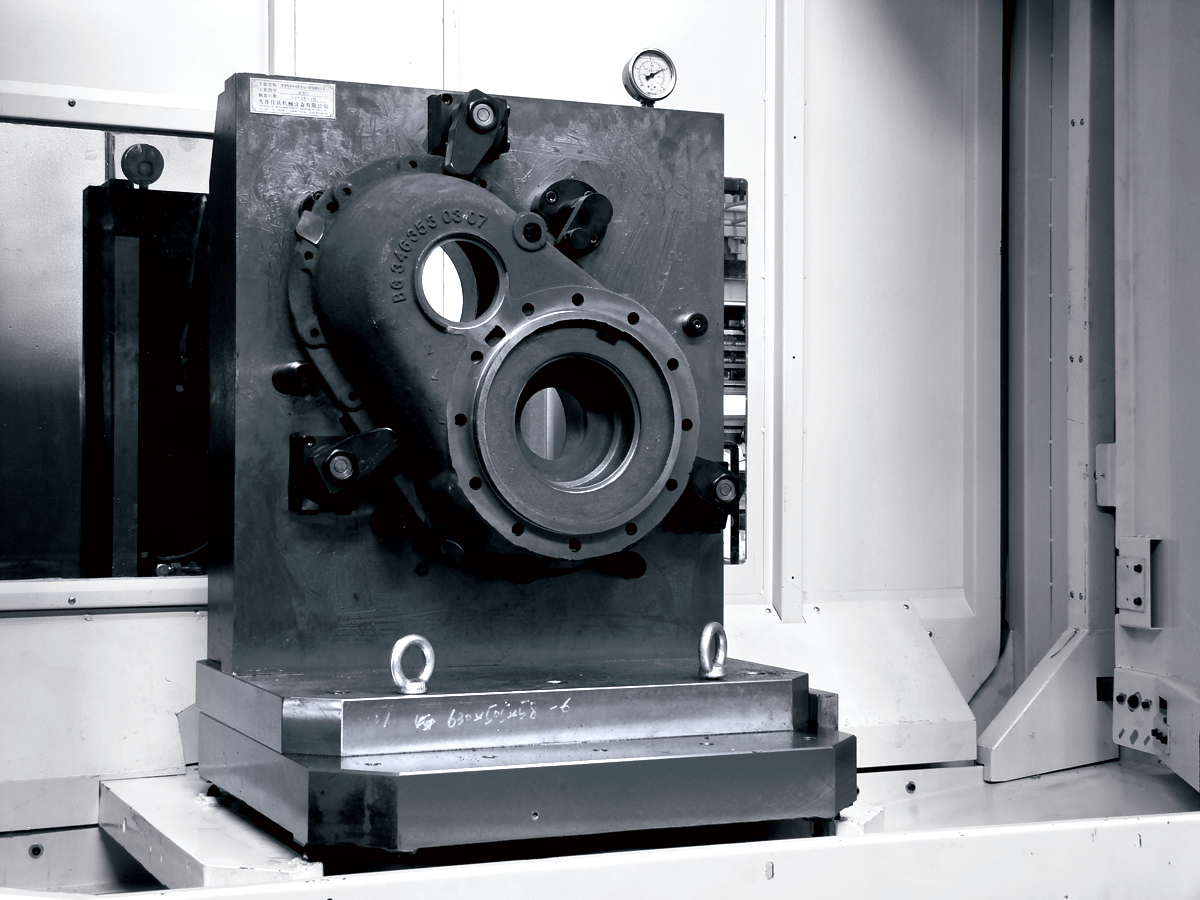 На станке используется подъёмная конструкция APC и метод прямого поворота паллет в обе стороны. Весь процесс разворота поворотного стола осуществляется с помощью двух двунаправленных кулачков /эксцентриков, постоянно осуществляющих скоростной поворот (время поворота: 12,5 сек), обладает хорошей стабильностью движения и высокой надёжностью.