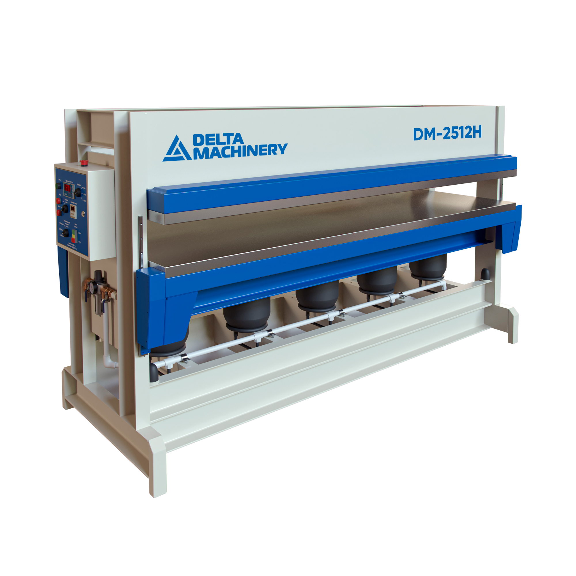 Пресс пневматический горячего прессования 2512 – предназначен для склеивания под температурой (max 100 C) плоских заготовок в пачке, для облицовывания плоских заготовок с одной или двух сторон шпоном, различными пластиками и пленками, а также для стеновых панелей и композитных материалов.