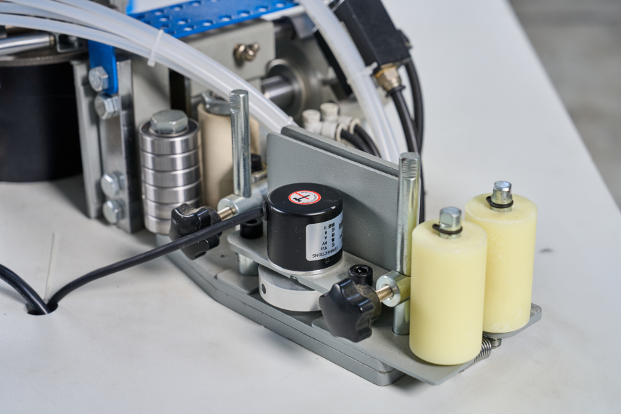 Система подачи кромочного материала с энкодером, позволяющая подавать точное количество кромки в зону приклеивания (параметр задается с пульта в мм).