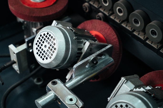 Станок оснащен двумя узлами шлифования торца с помощью горизонтальной бесконечной ленты, двумя горизонтальными и двумя вертикальными узлами шлифования с инструментом тарельчатого типа с лепестковым абразивным материалом.
