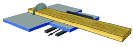 Предотвращает зажимание пилы при работе с сырой, напряженной заготовкой.