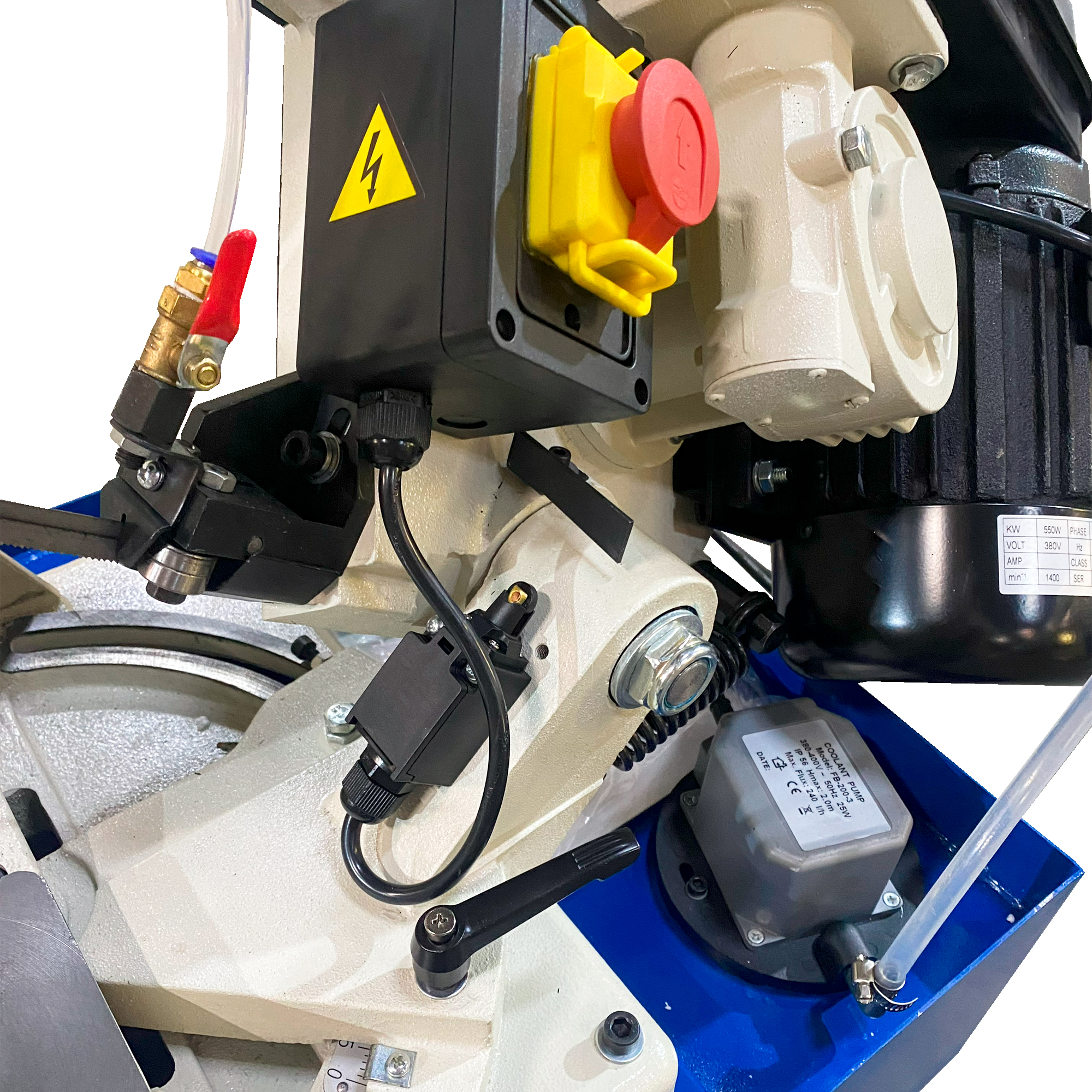 DMM MWS-150 включает в комплектацию систему позволяющую отключение пильного узла при достижении нулевой точки, которая запрограммирована в станок с завода, Это позволит обеспечить безопасность с работой этого станка и экономию электроэнергии.