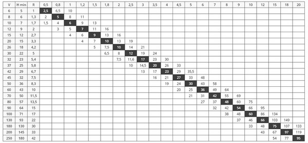 R (радиус), мм - внутренний радиус гиба;