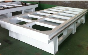 Станина станка выполнена из толстостенного метала с большим количеством продольных и поперечных ребер жесткости, что обеспечивают стабильную работу и превосходную виброустойчивость станка. Механическая обработка монтажных плоскостей производится на портальном обрабатывающем центре производства Тайвань. Допуск на прямолинейность монтажной поверхности направляющей рейки/стойки после механической обработки составляет ≤0,02 мм (по всей длине). Корпус станины и портал дважды обрабатывается на обрабатывающем центре: (1) Операция фрезерования + сверление (2) снятие технологической фаски + нарезание резьбы + тонкое фрезерование, что обеспечивает идеальную сборку и безупречную точность в работе станка.