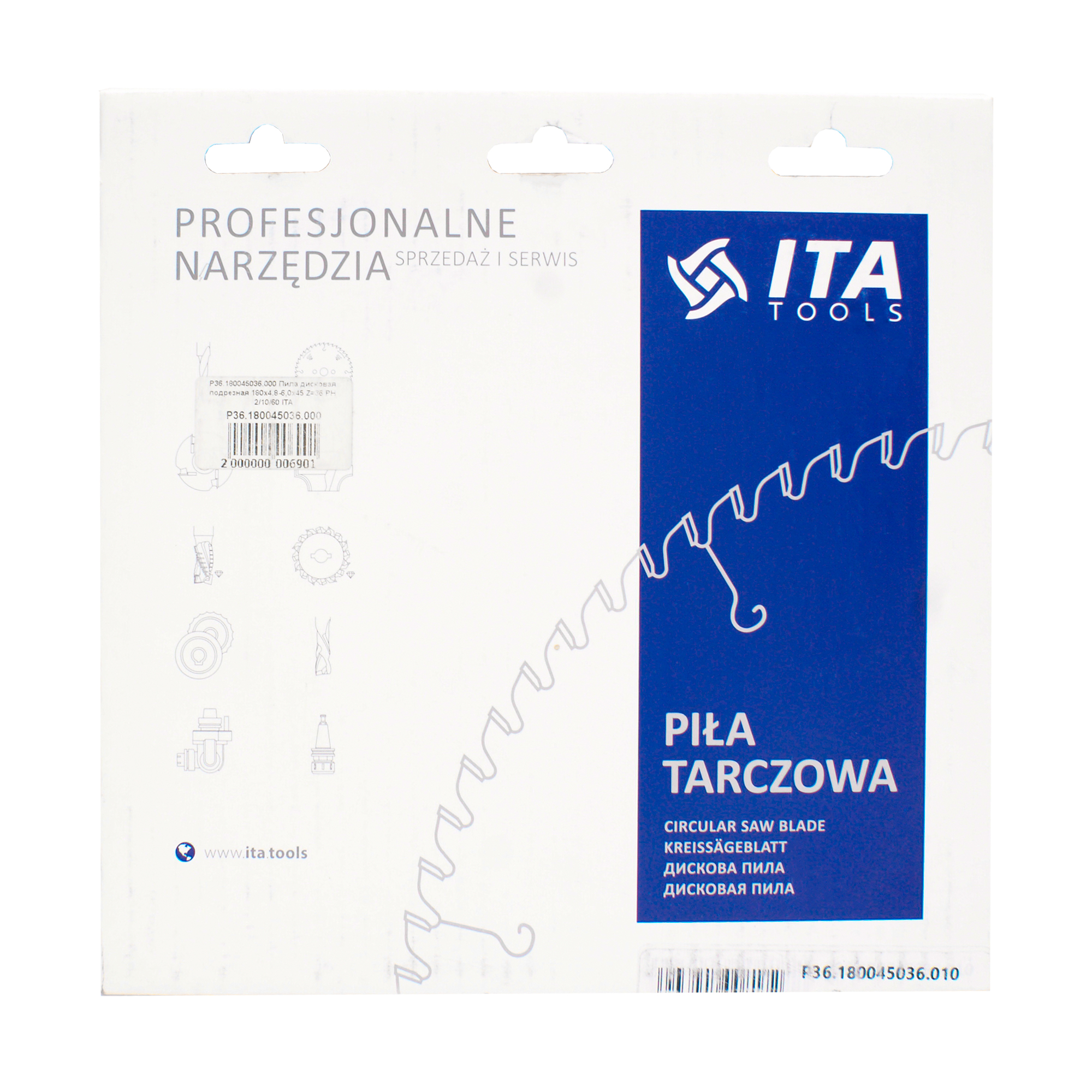 Пила дисковая ITA 180х4,8-6,0x45 Z=36 PH 2/10/60 подрезная P36.180045036.000