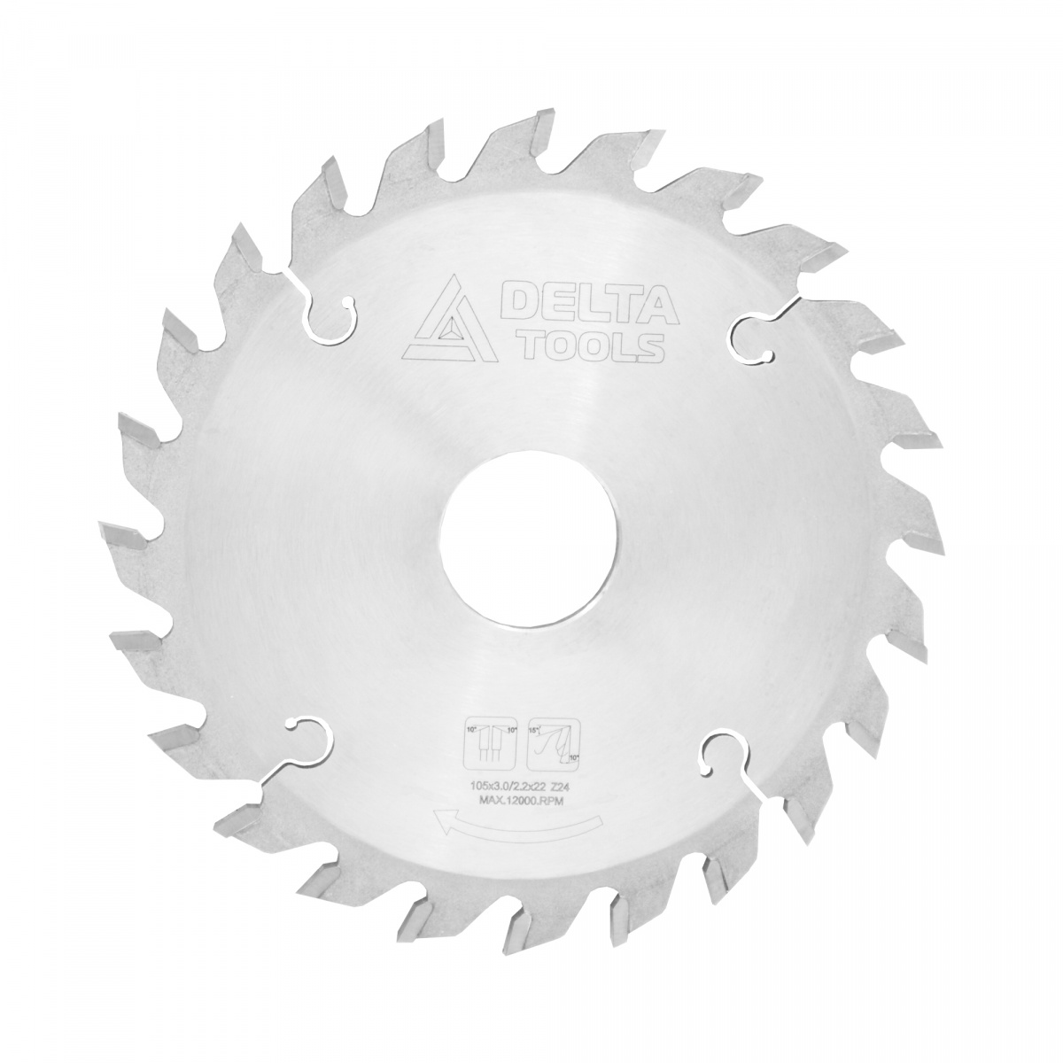 Пила торцовочная DELTA TOOLS 105x22 Z=24 предназначена для обрезки кромки по торцам заготовки, при обработке на кромкооблицовочных станках.