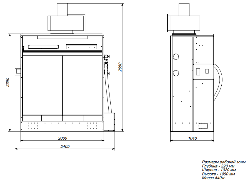 Размер корпуса с вентилятором ДхГхВ: 2440х1050х2930 мм
