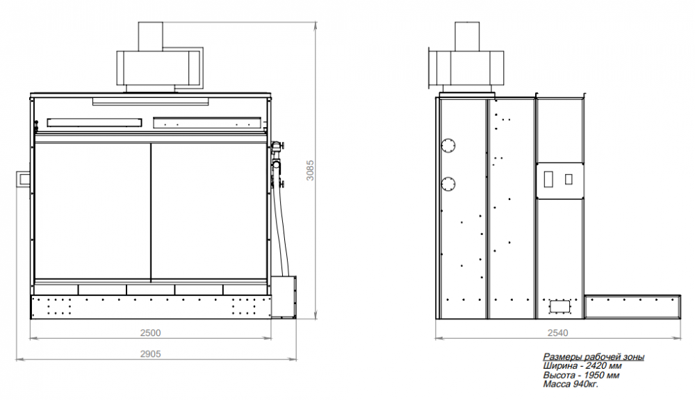 Размер рабочей зоны ДхГ: 2420х1000 мм