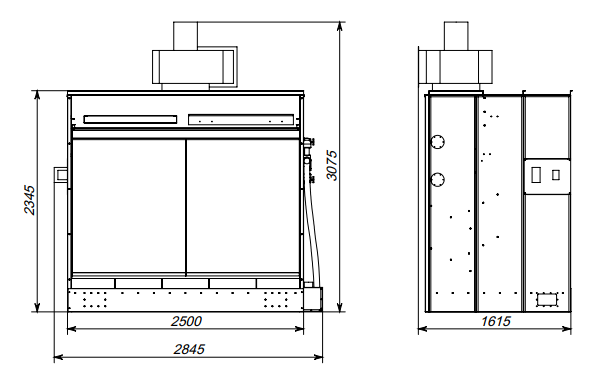 Размер корпуса с вентилятором ДхГхВ: 2940х1550х3130 мм