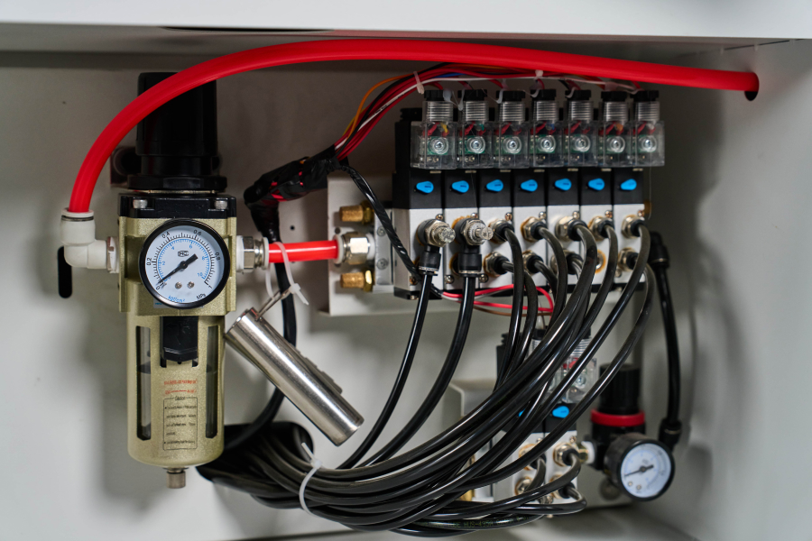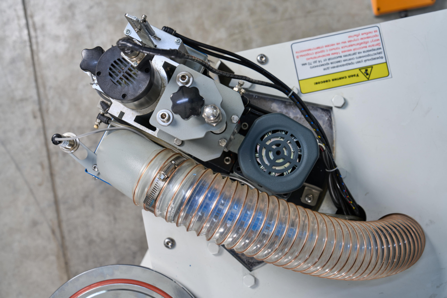 Для получения максимально качественного результата приклеивания кромки станок оборудован форсунками для подачи разделительной жидкости в зону контакта плоскости заготовки и свеса кромки.