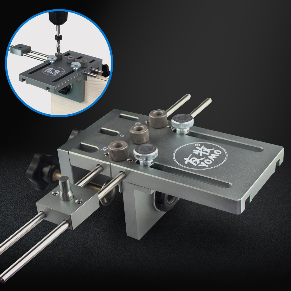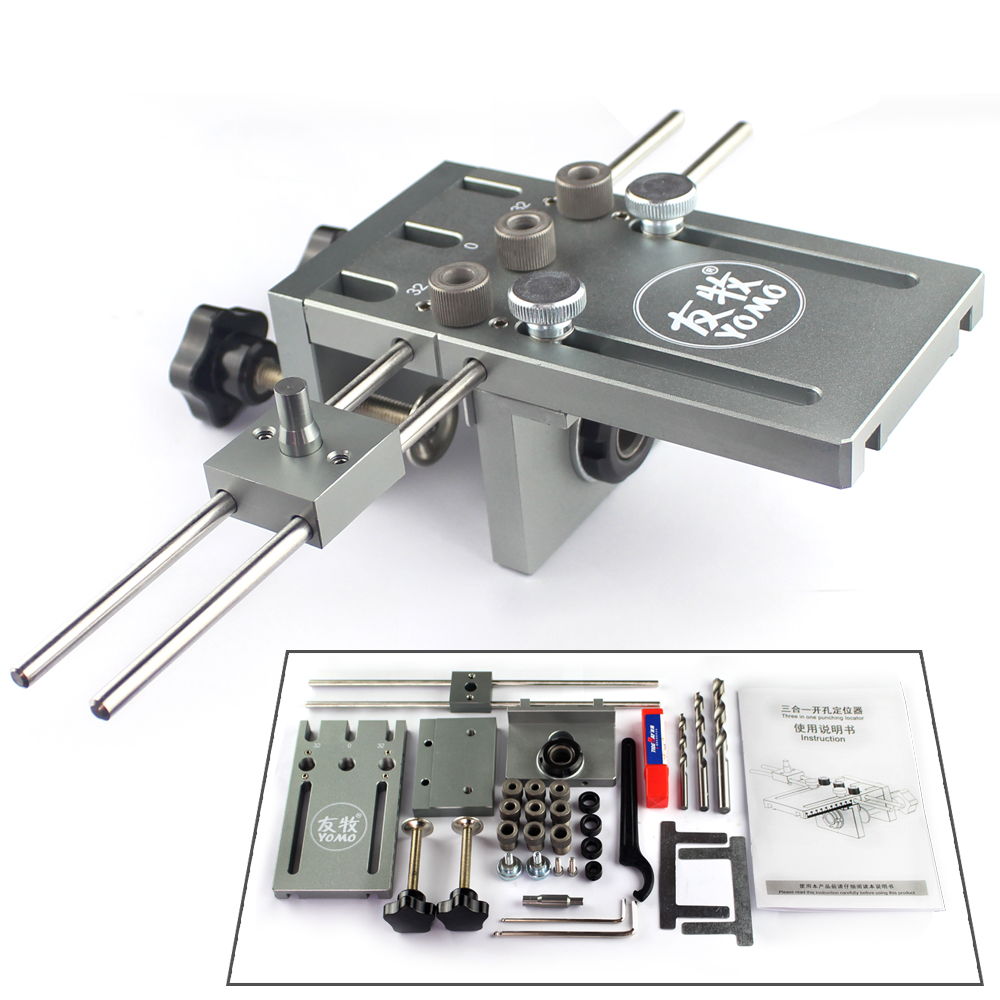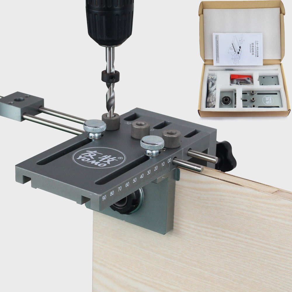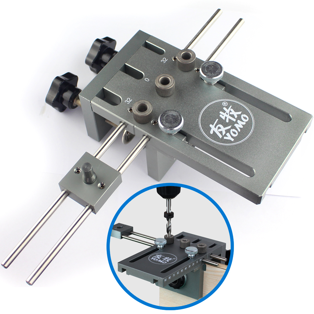 В комплекте имеются сменные втулки под различные диаметры сверел. Для сверления в торец имеется 3 отверстия с шагом 32 мм. В комплекте сверла 6мм, 8мм, 10мм, 15мм.