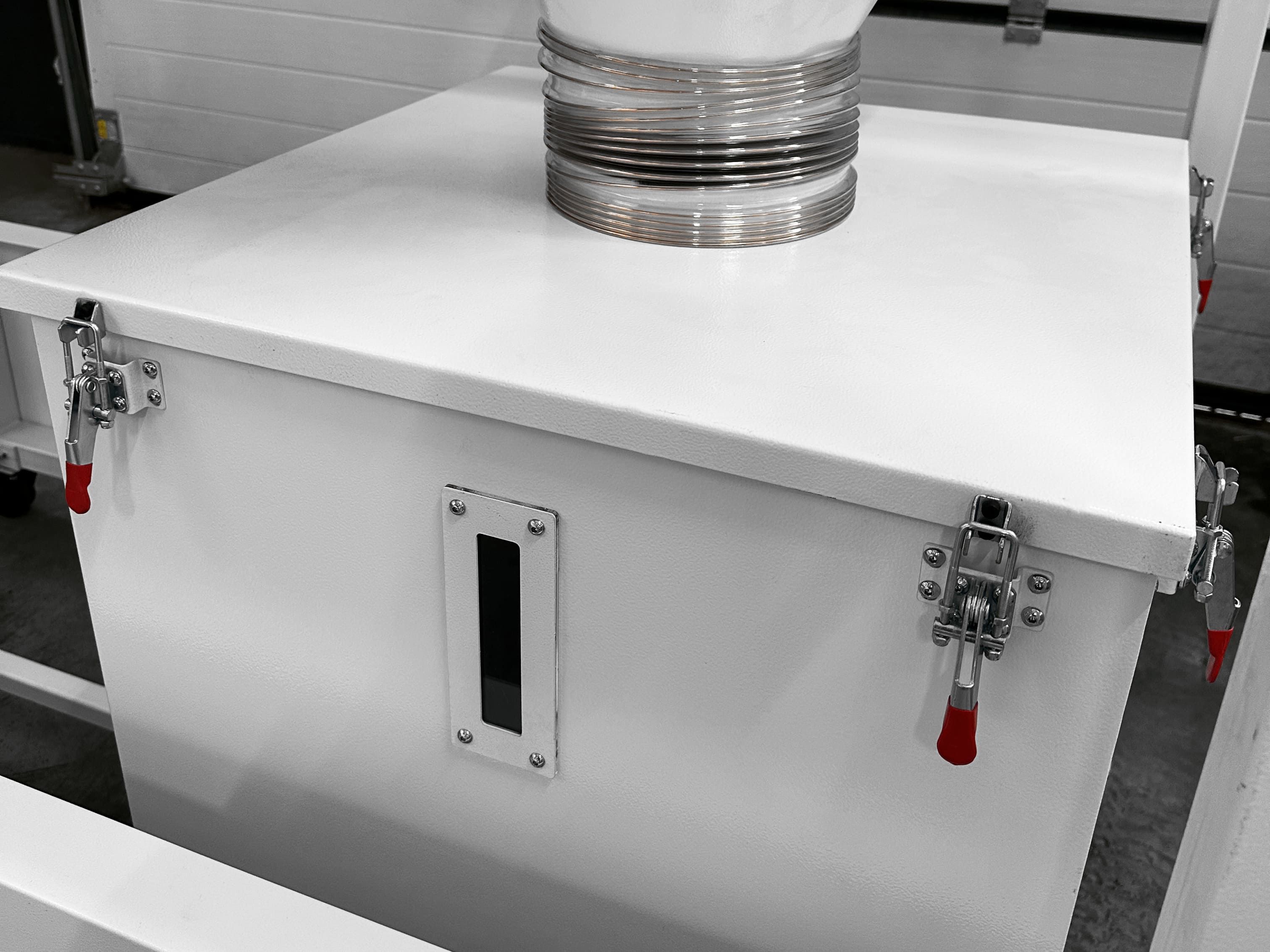В данном отсеке происходит очистка воздуха от твёрдых загрязнений (стружка, опил и т.д.) при помощи центробежной силы происходит отделение «тяжелых» частиц от воздушного потока.