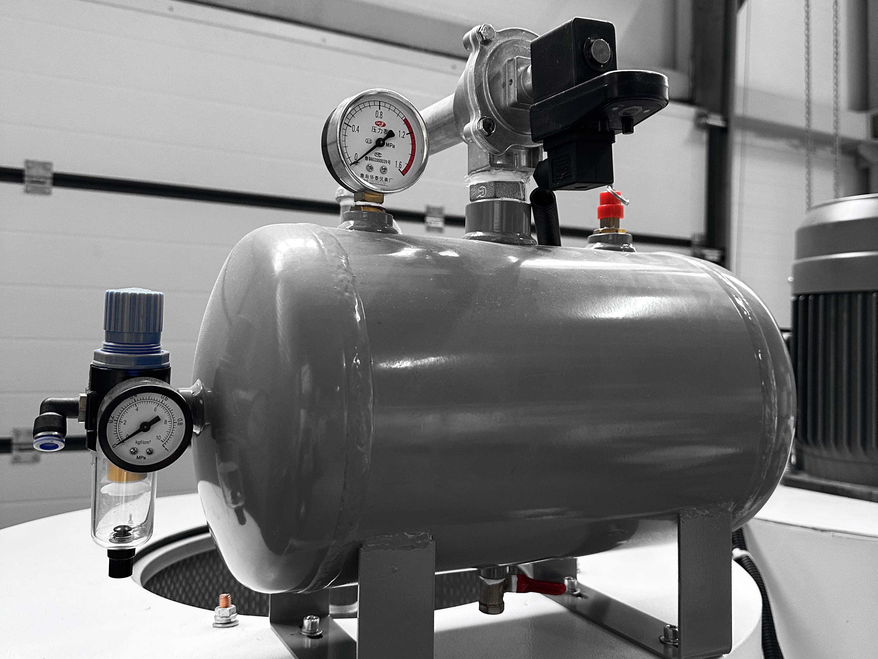 Импульсная пневмопродувка позволяет очищать фильтр и тем самым поддерживать эффективность работы агрегата. Продувка фильтров сжатым воздухом происходит через определенный временный интервал (интенсивность и время продувки можно регулировать, в зависимости от степени загрязненности)