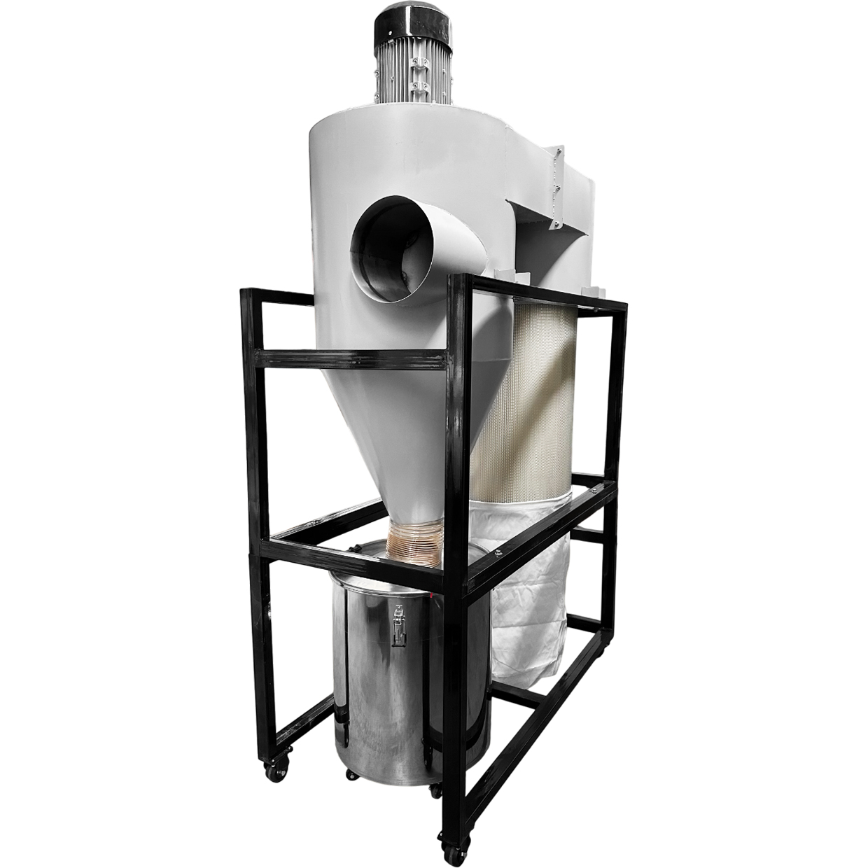 В данном отсеке происходит очистка воздуха от твёрдых загрязнений (стружка, опил и т.д.) при помощи центробежной силы происходит отделение «тяжелых» частиц от воздушного потока.