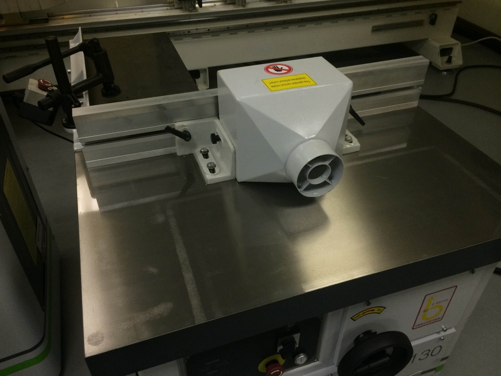 Кожух под фрезы Ø230 мм. Направляющие линейки длиной 370 мм каждая. Для удаления стружки в кожухе предусмотрено аспирационное отверстие Ø100 мм.
