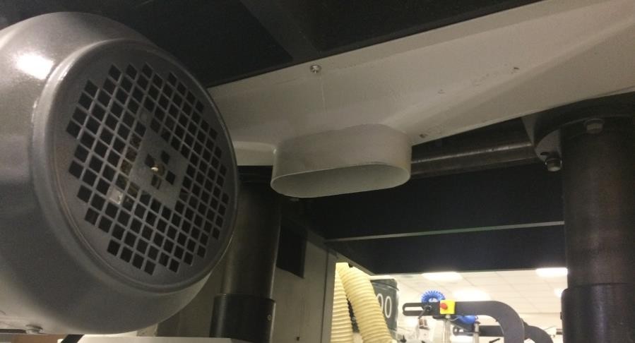 Выброс стружки осуществляется через эксгаустерные воронки. Фото сверху – аспирационный патрубок от верхнего (рейсмусового) ножевого вала. Фото снизу – аспирационный патрубок от нижнего (фуговального) ножевого вала.