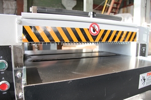 Неприводные ролики сверху станка Оператору, принимающему заготовку удобно её возвращать оператору на входе, перемещая заготовку по роликам. |