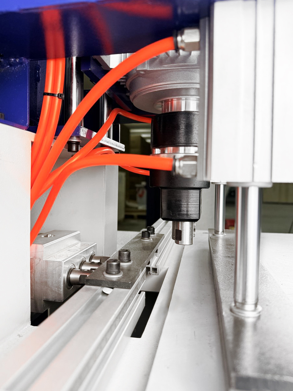 Сверление по вертикали происходит сверлильной группой с цанговыми зажимами, установкой сверла в патрон и протяжкой винтами шестигранниками