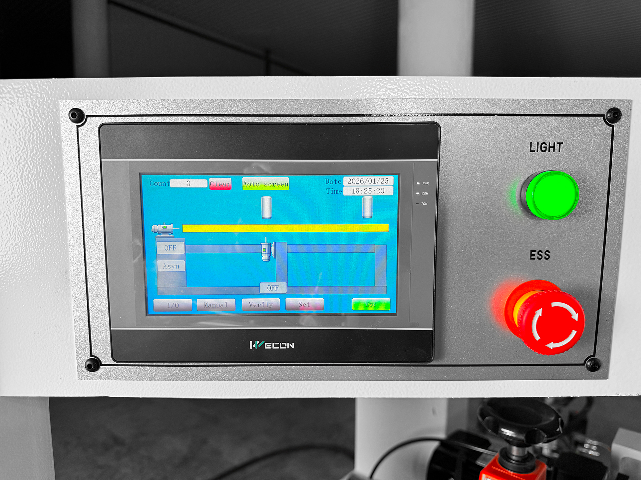 Фиксация траверсы на заданном размере производится с помощью механического тормоза, активируемого переключателем, расположенным рядом с электронным табло.