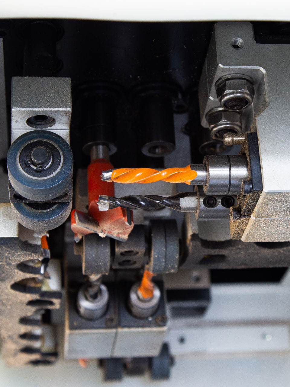 Три сверлильных группы: две верхние и одна нижняя по 2,2 Вт +2 фрезерных узла (верхний и нижний)