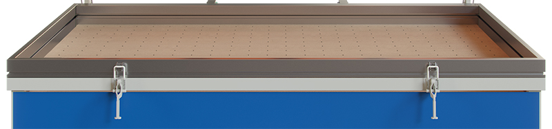 6. Рабочий стол с покрытием МДФ для корректной работы вакуумной системы без потери давления. Так же возможно сделать рабочий стол из оцинкованного листа (дополнительная опция).