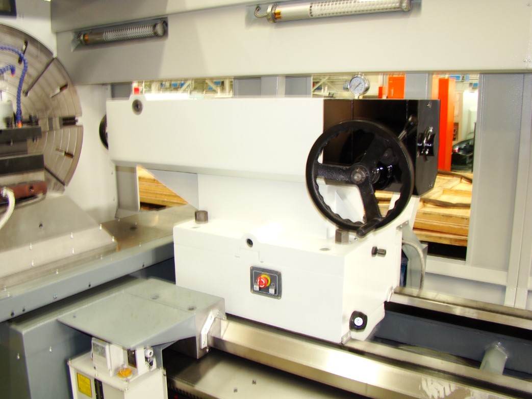 На станке установлена мощная задняя бабка, перемещение осуществляется протягиванием по направляющим. Опционально возможно установить электрический привод перемещения.
